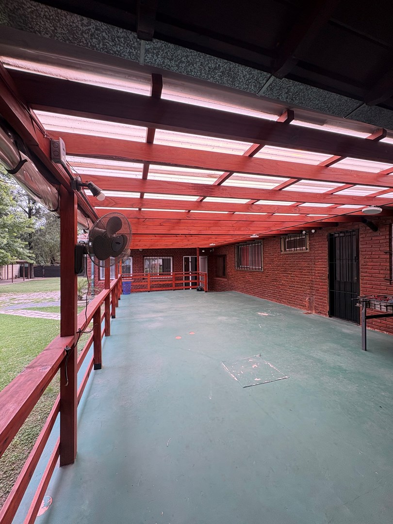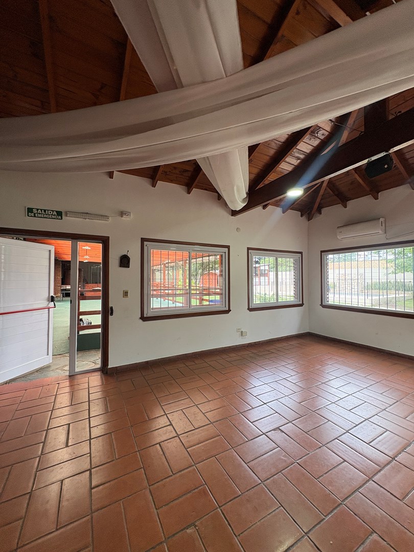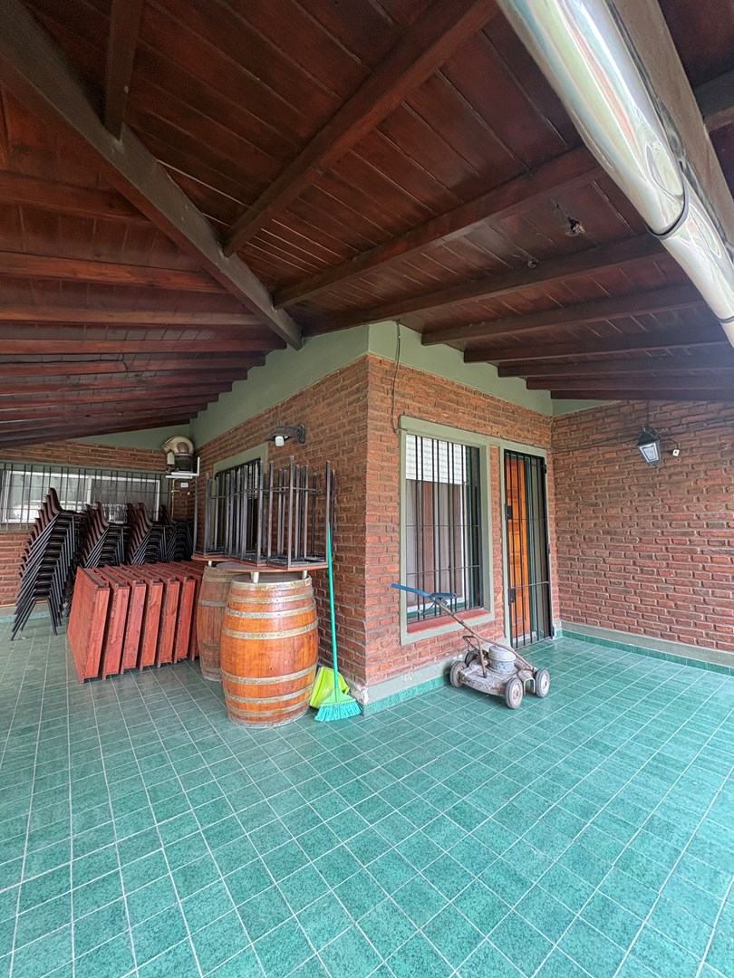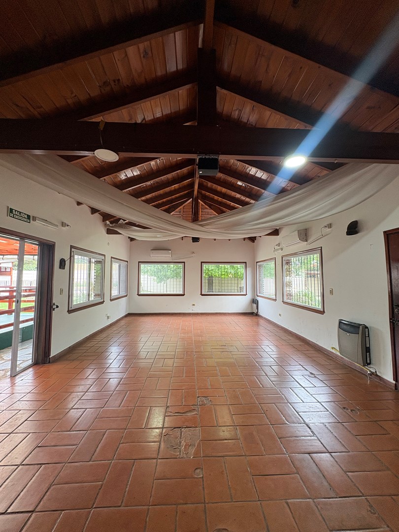 Quinta para eventos en El Talar Excelente propiedad desarrollada sobre amplio lote, ideal para eventos sociales y familiares, con múltiples espacios funcionales. Cuenta con salón principal cerrado, sector de servicio/habitación para el agasajado, cocina equipada, despensa y baño. Dispone de baños para damas, caballeros y personas con discapacidad. Parrilla con barra, asador, horno pizzero y barra de tragos. Amplio parque con jardín, galería semi cubierta, pileta de 7x3, jacuzzi y cascada. Cochera con capacidad para varios vehículos. Servicios: Luz trifasica y bomba sumergible. Casa principal: La propiedad incluye una casa independiente con living, cocina-comedor, despensa, playroom, tres dormitorios (uno en suite) y baño completo.