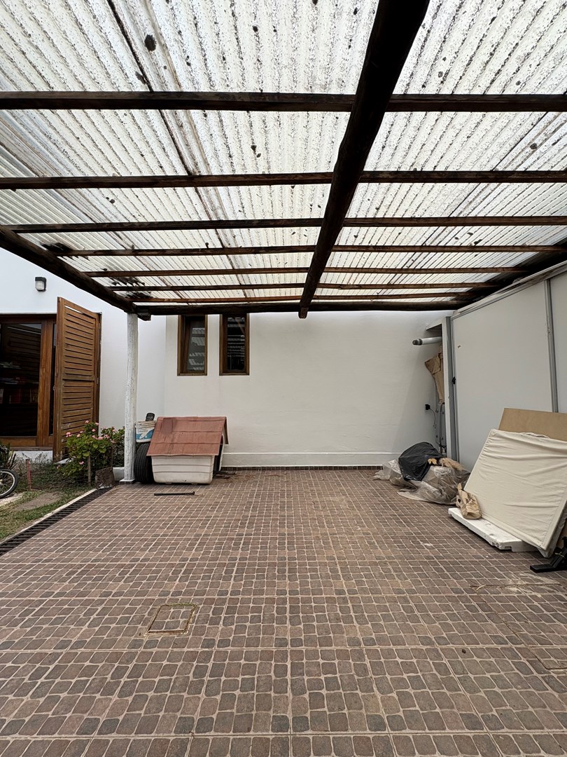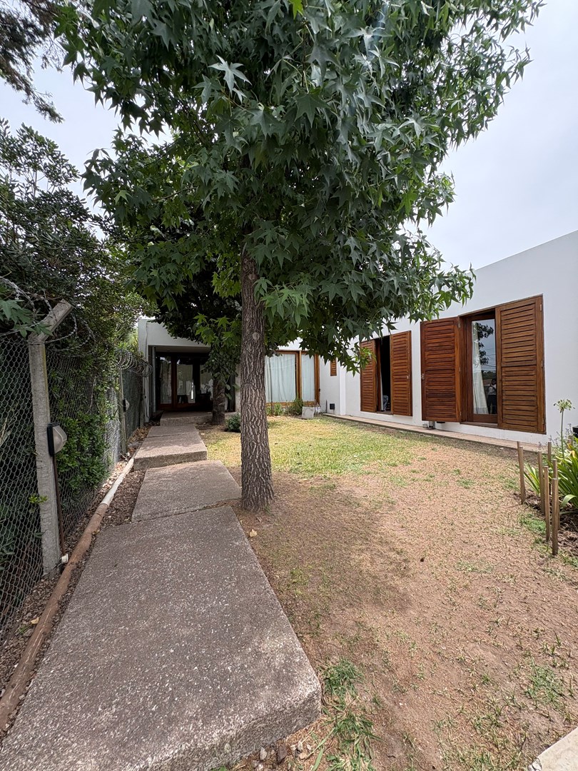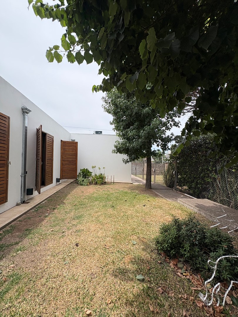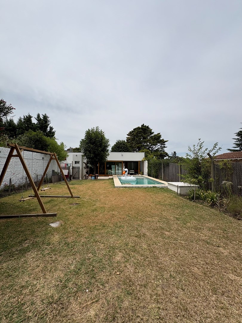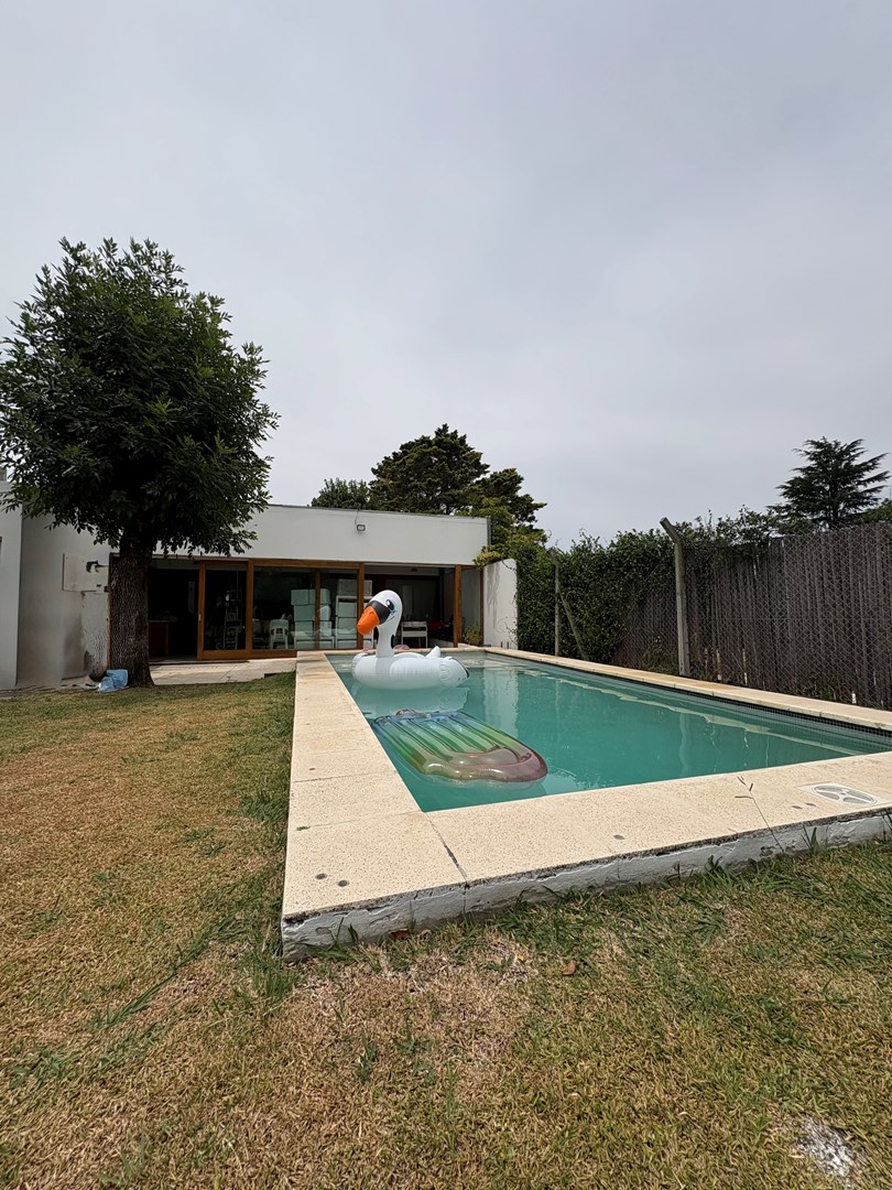 Casa moderna desarrollada en una sola planta, con excelente distribución, ambientes amplios y muy buena iluminación natural. Cuenta con un cómodo living-comedor con cocina integrada, toilette de recepción, dos dormitorios de buen tamaño con baño completo compartido y una suite principal con baño completo y vestidor. Además, dispone de lavadero, espacio de guardado y una oficina con kitchenette y baño. El lote ofrece un amplio jardín parquizado con una gran pileta al fondo, galería cerrada con parrilla ideal para reuniones y un baño exterior para uso de la pileta, evitando ingresar a la casa principal. Completa la propiedad un garaje techado para dos autos.