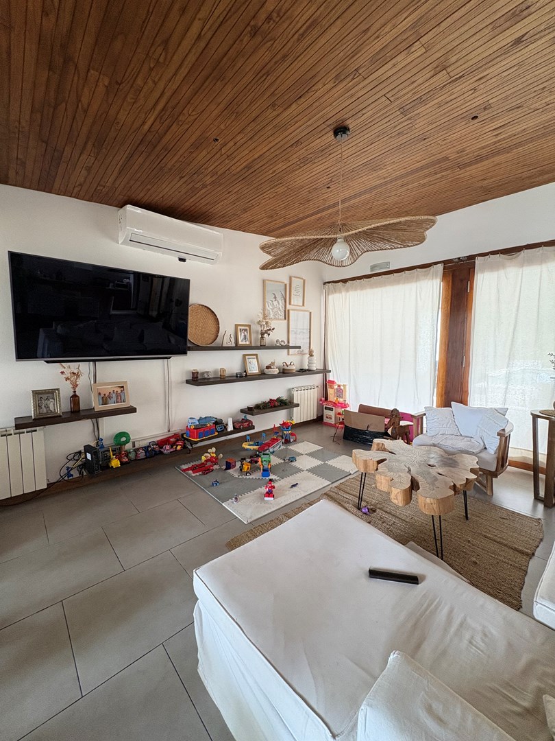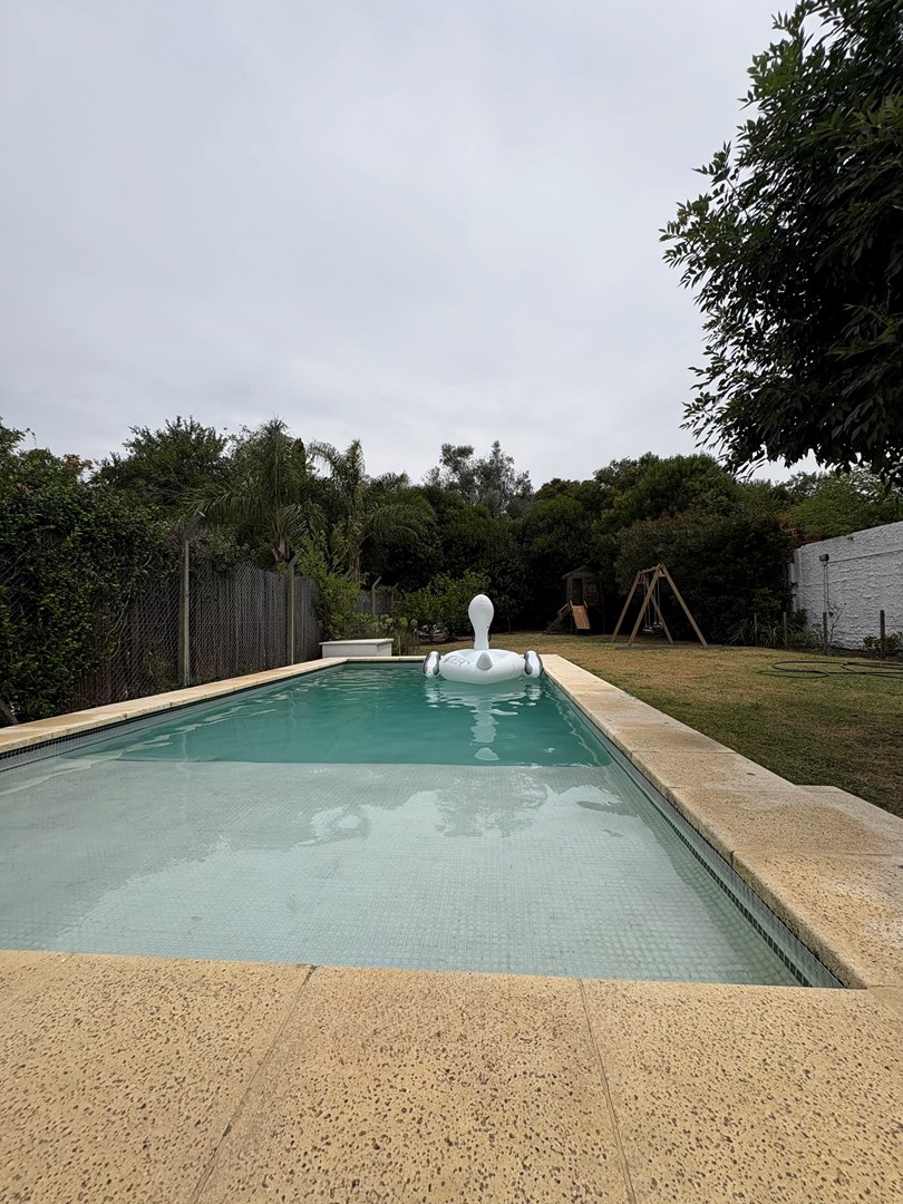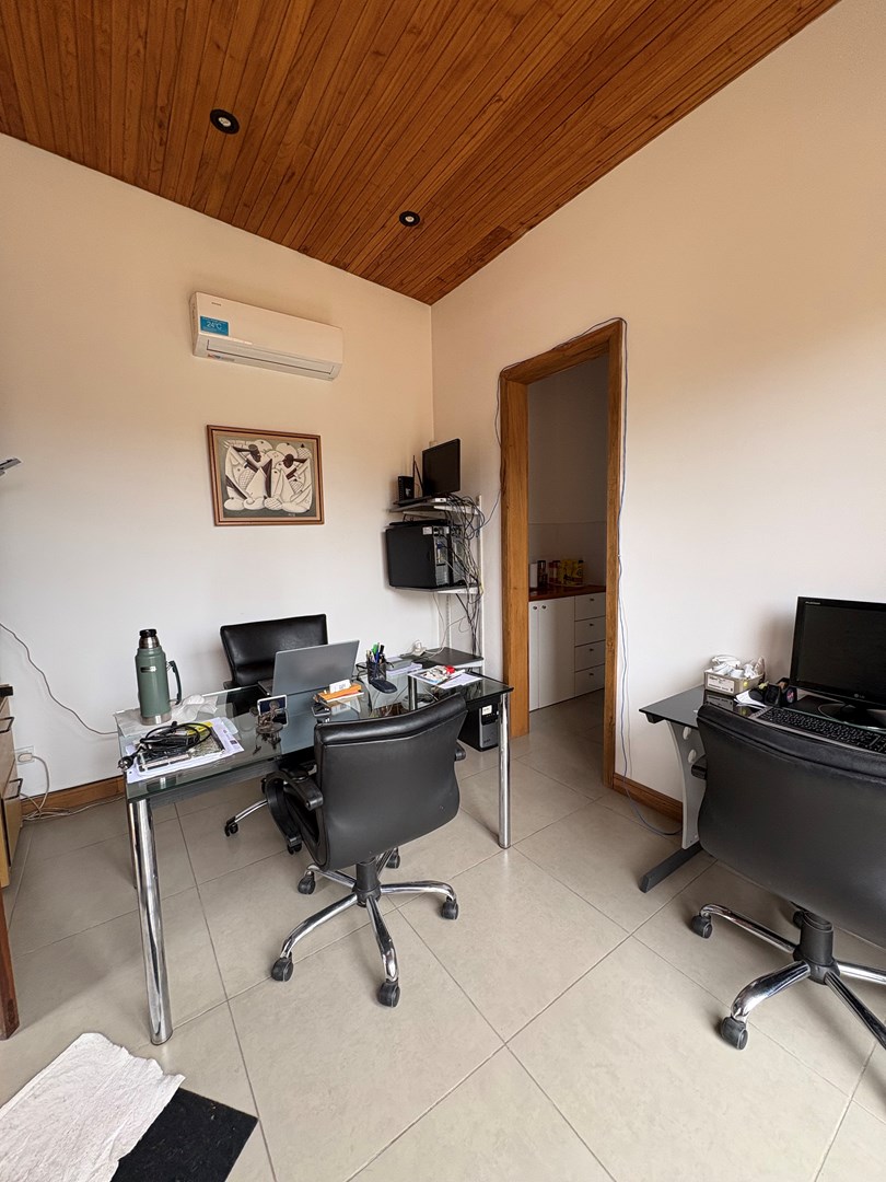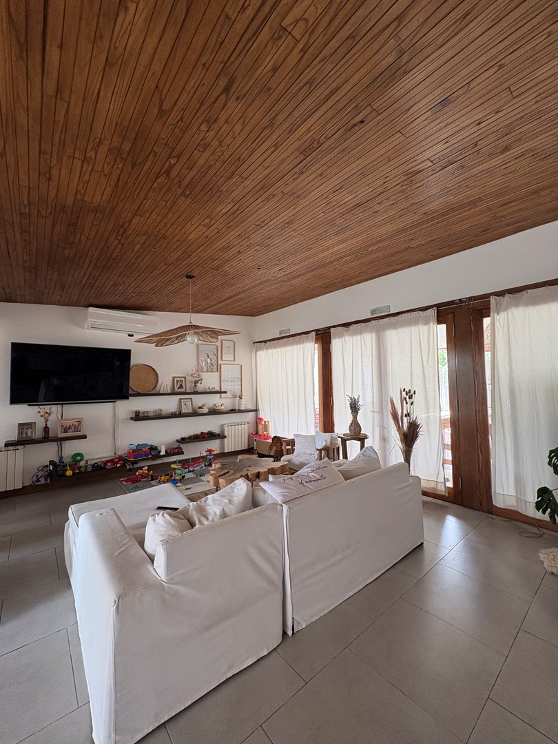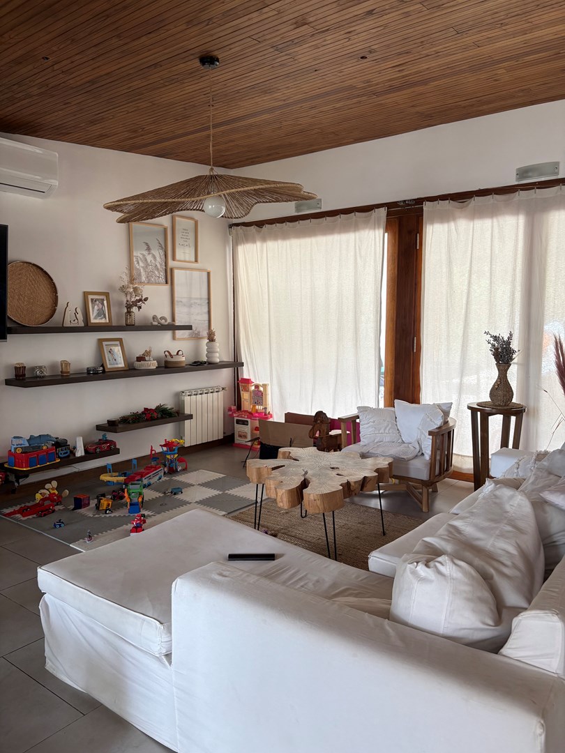Casa moderna desarrollada en una sola planta, con excelente distribución, ambientes amplios y muy buena iluminación natural. Cuenta con un cómodo living-comedor con cocina integrada, toilette de recepción, dos dormitorios de buen tamaño con baño completo compartido y una suite principal con baño completo y vestidor. Además, dispone de lavadero, espacio de guardado y una oficina con kitchenette y baño. El lote ofrece un amplio jardín parquizado con una gran pileta al fondo, galería cerrada con parrilla ideal para reuniones y un baño exterior para uso de la pileta, evitando ingresar a la casa principal. Completa la propiedad un garaje techado para dos autos.