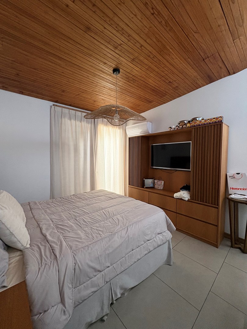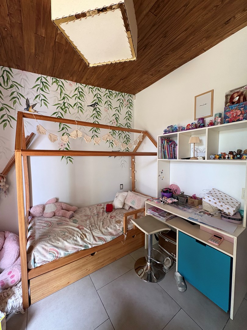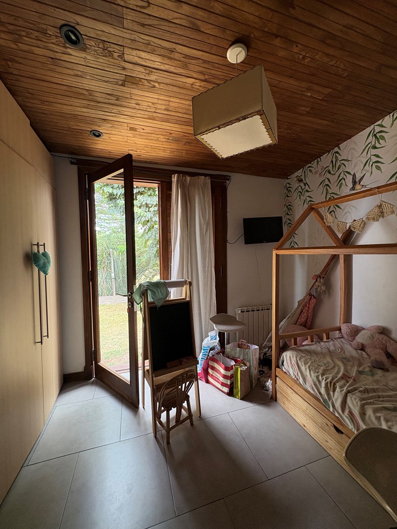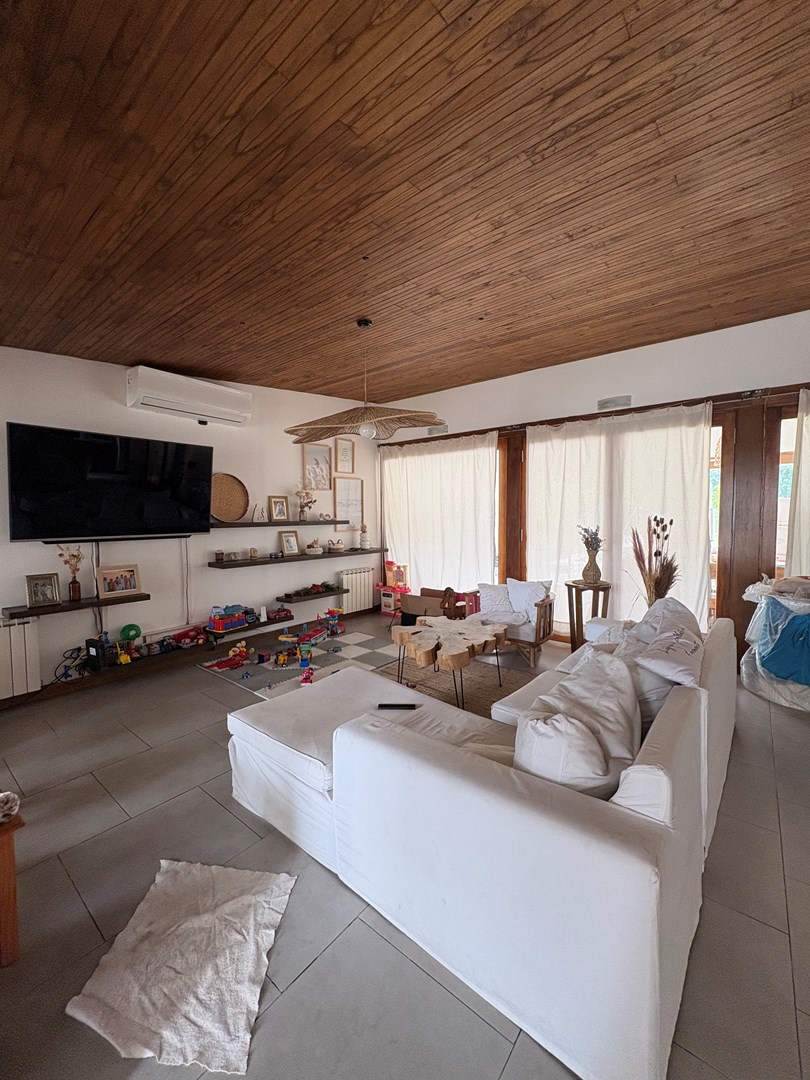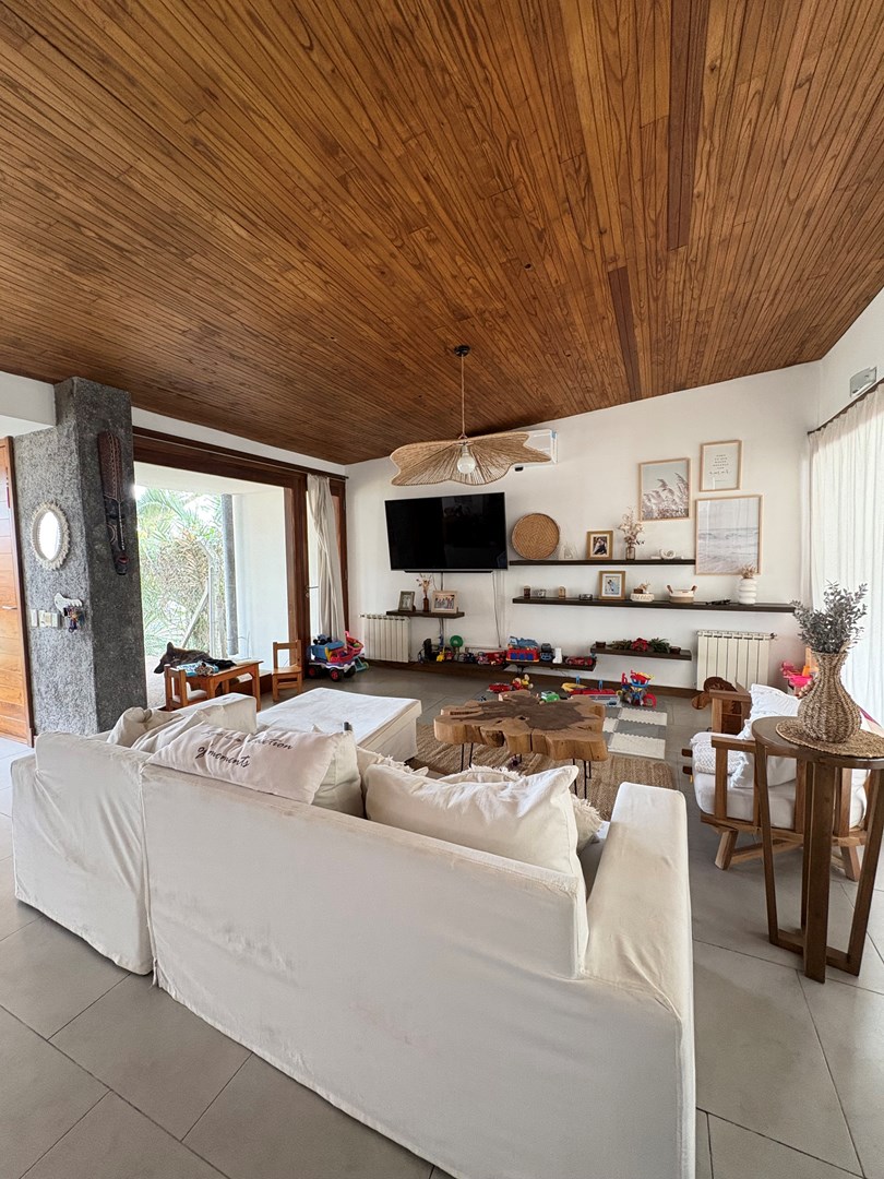 Casa moderna desarrollada en una sola planta, con excelente distribución, ambientes amplios y muy buena iluminación natural. Cuenta con un cómodo living-comedor con cocina integrada, toilette de recepción, dos dormitorios de buen tamaño con baño completo compartido y una suite principal con baño completo y vestidor. Además, dispone de lavadero, espacio de guardado y una oficina con kitchenette y baño. El lote ofrece un amplio jardín parquizado con una gran pileta al fondo, galería cerrada con parrilla ideal para reuniones y un baño exterior para uso de la pileta, evitando ingresar a la casa principal. Completa la propiedad un garaje techado para dos autos.